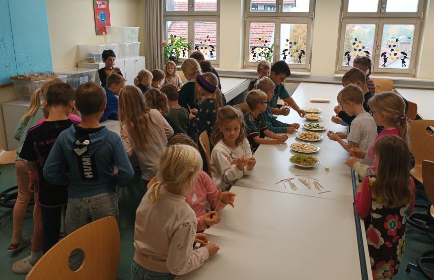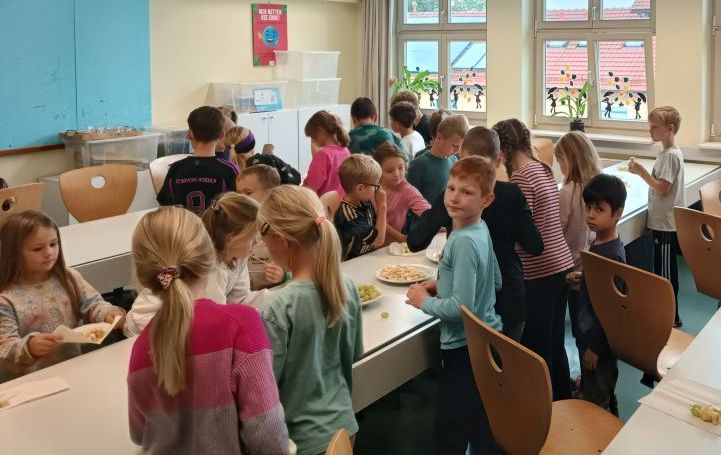 Unter Anleitung der WG-Lehrerinnen Eva Brandl und Susanne Holler bereiteten die Schüler aller Jahrgangsstufen leckere Obst- und Gemüsespieße. Gesunde und sehr schmackhafte Vitalkekse wurden außerdem gemeinsam gebacken. Sehr lecker!