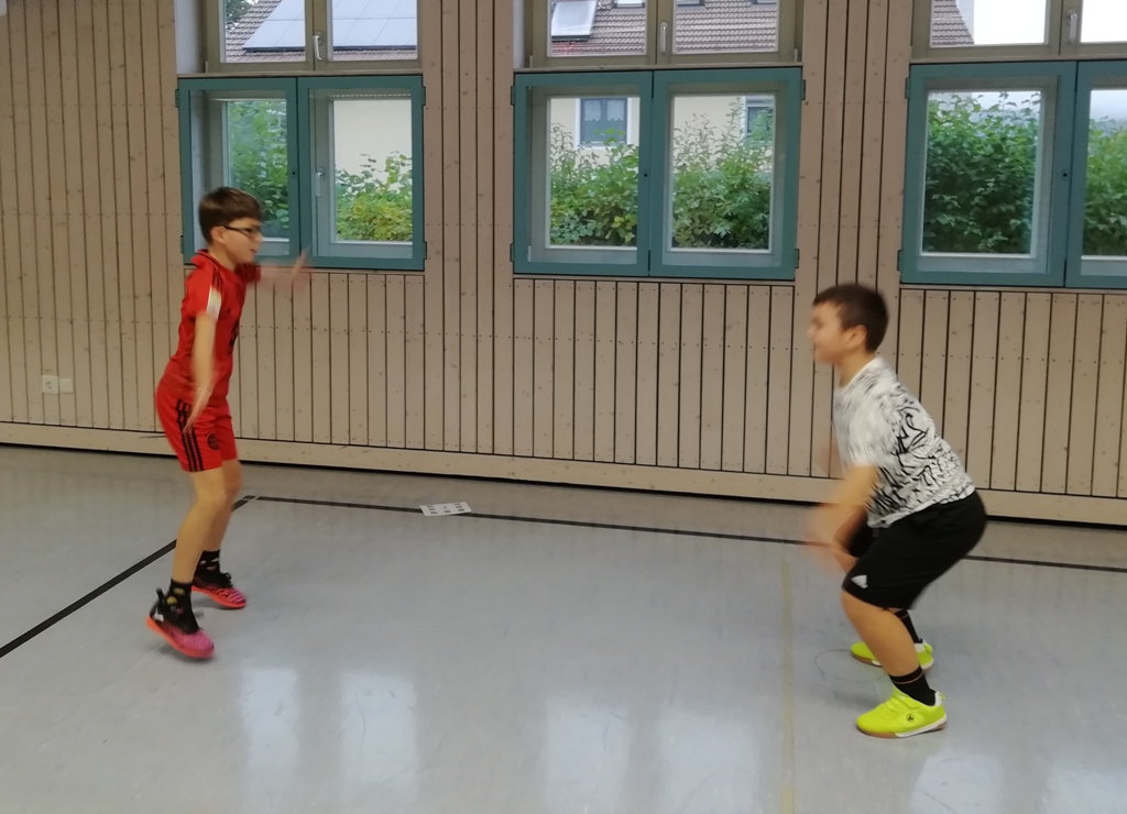 Die 3. Klasse startete Montagmorgen in der Turnhalle unter dem Motto „Sport macht Spaß“ in den bewegten Tag. Paarweise schauten sich die Kinder mit Hilfe von QR-Codes auf ihren Tablets kurze Anleitungsvideos von Sportprofis an und führten die jeweiligen Übungen (verschiedene Hampelmänner, Krebs, Käfer) anschließend ca. 20x in ihrem eigenen Tempo durch. Nachdem alle Kinder alle Übungen kennengelernt und ausprobiert hatten, wurden diese kombiniert. Auf Zuruf führten die Kinder nacheinander die entsprechende Turnübung aus und kamen dabei ganz schön ins Schwitzen. Auch die 4. Klasse feierte den besonderen Tag mit Extra-Bewegungsanlässen, wie dem Zeitungspapierlauf und dem Inselspiel. In den Klassen 1 und 2 wurde im Sportunterricht ebenso auf reichlich Bewegung geachtet.
